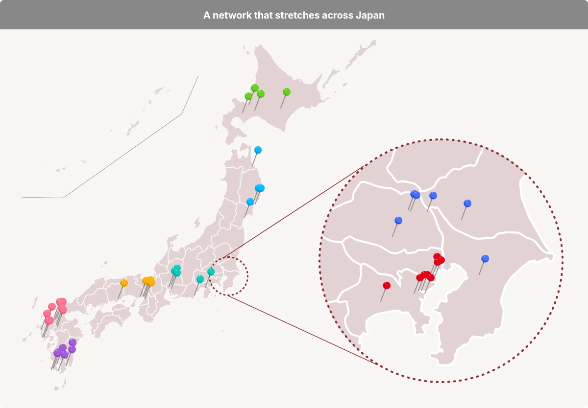 Refrigerated warehouses are located at key distribution points throughout Japan