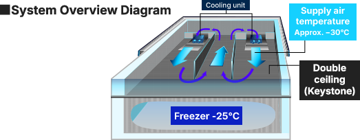 Semi-ultralow temperature freezers Our semi-ultralow temperature warehouses maintain product quality using a ceiling hairpin coil cooling method that is gentle on the stored cargo.