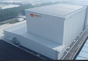 Construction completed on the Bangpakong 2nd Distribution Center, which becomes the first center in Thailand to adopt NewTon refrigerant equipment that uses a natural refrigerant (ammonia/CO2 hybrid refrigerant). The rooftop and exterior walls are also equipped with solar panels (583.1kW)