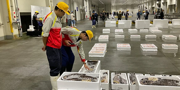 国内外の幅広いネットワークを活⽤し、⽔産品や農畜産品など多様な⾷品原料や加⼯品を安定的に仕⼊れています。水産品に関しては買参権を活用し、市場で優先的に商品を仕入れることで、安定した調達を実現しています。