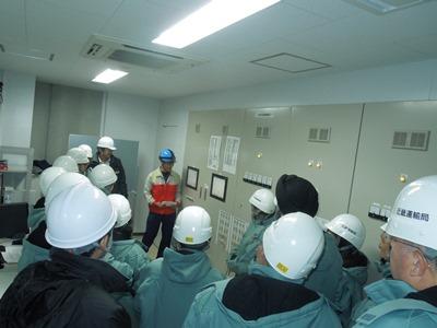 施設見学会では、屋上太陽光発電システム、電動式移動ラック、カーゴナビゲーションシステム、天井ヘアピンコイル、ノンフロン冷凍装置(NewTon)、ハイブリッドデシカント陽圧システム、BCP対策(リチウムイオン蓄電池)など、同センターの主要設備について、当社の技術担当専門役の説明を介しながら見て回りました。
