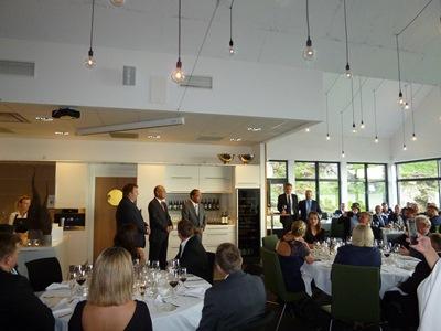 ウエルカムドリンクで会場が和んだ後、FA社の創業者であるAnders Pedersen氏の祝辞でパーティーはスタートしました。その後のHI社CEOのRoger