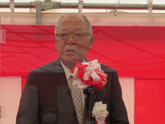 施主挨拶では、会長の吉川俊雄が出席者へ感謝の意を表すとともに、「当センター建設によって、東京の東の入り口を抑えることができた。環境配慮、働き方改革など、全てSDGs精神にのっとった、CASBEE“A”を取得した福岡ISLAND