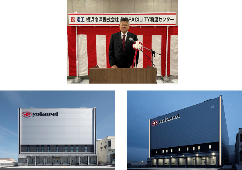 竣工に際し社長の古瀬は、建設に携わった関係者の皆様に感謝の意を表すとともに、「当センターの歴史は、1978年に九州地区第2の拠点として箱崎工場の竣工稼働により始まった。当時は、福岡市内の冷蔵倉庫用地の物件が殆ど無く、東部物産貿易㈱が所有していた土地を、福岡市に分譲売買制約があったため合弁会社東部横冷㈱を設立スタートさせ、100%子会社化したのちにヨコレイに吸収合併した。2021年老朽化のため、43年間の歴史に幕を閉じ、本日スクラップ&ビルドとして新たに生まれ変わった。センター名の「FACILITY」には、当社の設備や利用環境を戦略的に駆使し、将来を見据えて最適化を図ることをコンセプトとした。データや情報を一箇所に集積させ、次世代ソリューションとしてスマートオフィス化に取組み、事務手続きの効率化により人手不足の解消を図っていく。近隣の福岡ISLAND