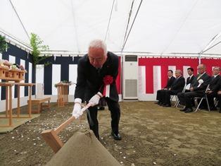 施主挨拶では、会長の吉川が出席者へ感謝の意を表すとともに、「名古屋地区で27年ぶりの冷蔵倉庫となる。近年、物流が大きく変化する中、現状に適合した物流機能を持った冷蔵倉庫となる。」と意気込みを語り、社長の西山は「神奈川県外に初めて進出したのが名古屋の地で、今回の物流センターは地元からも非常に期待されている」と述べました。