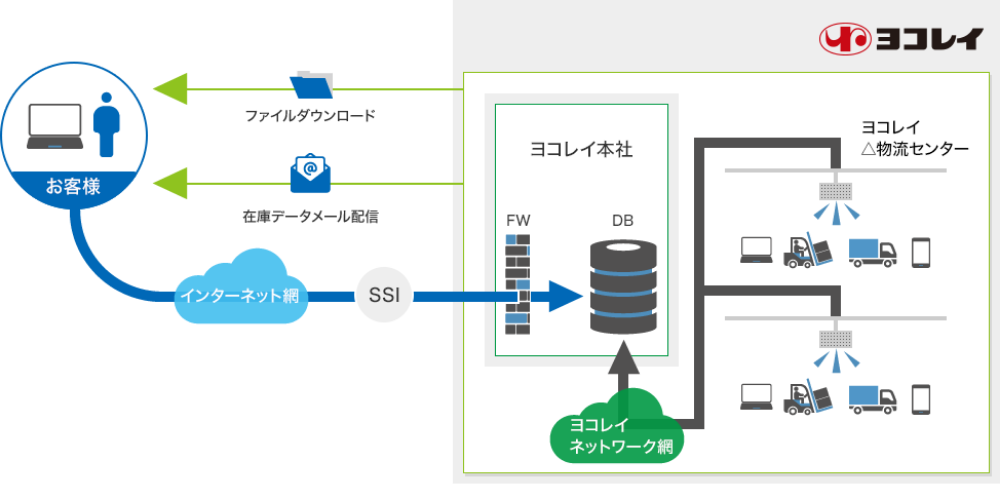 ICTサービスとは、メインシステムを⾃社開発している強みを活かし、ICT(情報通信技術)を利用してお客様のビジネスを幅広くサポートするサービスです。お客様の個々のニーズに合わせてFAX・メール・EDIなど各種ICTサービスをご利⽤いただくことにより、⼊出庫実績・在庫情報などが把握でき、業務の効率化が図れます。また、BCP(事業継続計画)にも注⼒し、ホストコンピューターを含む全システムをデータセンターに設置すると共にDRサイトを遠隔地に構え、有事の際にも業務継続できる環境を構築しています。